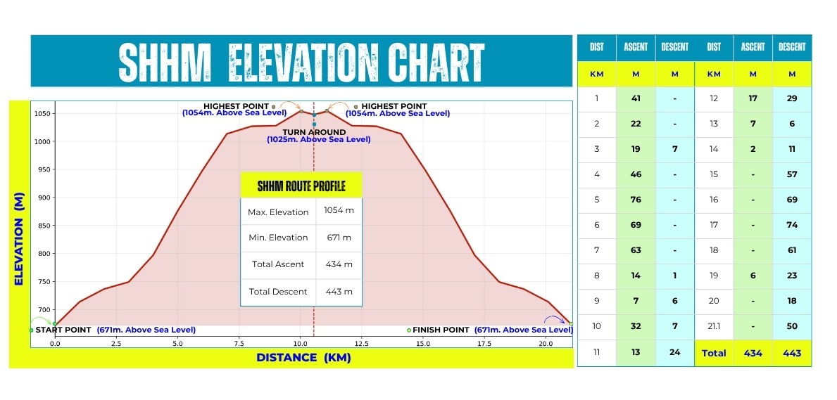 Checkout the official route of the SHHM with some important data like Actual Ascent and Elevation Graph etc.